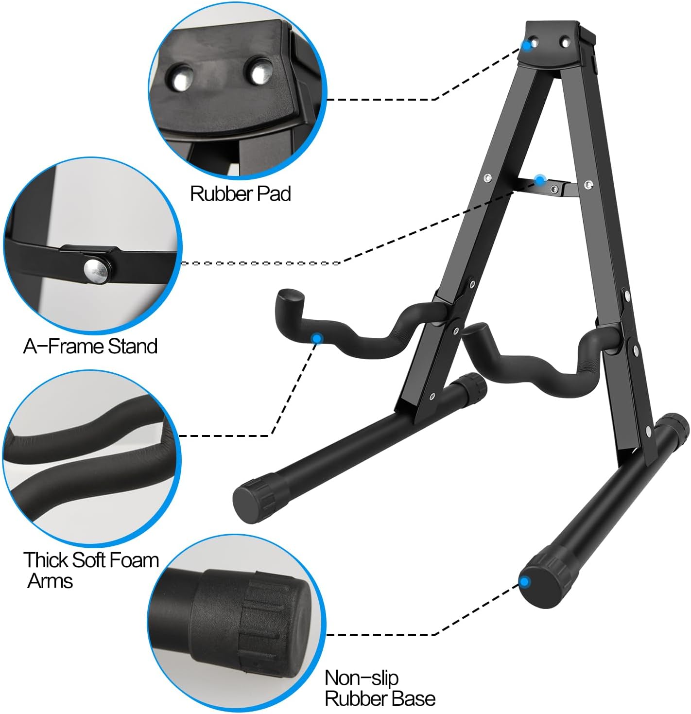 A-Frame Folding Guitar Stand – 1/2/4 Pack, Non-Slip Rubber and Foam Arms, Supports Acoustic, Electric, Bass, Ukulele, Banjo